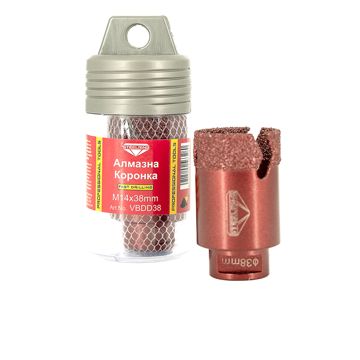 Алмазна коронка STEELRING Ø38 мм M14 для керамограніту, граніту, мармуру, каменю (VBDD38)