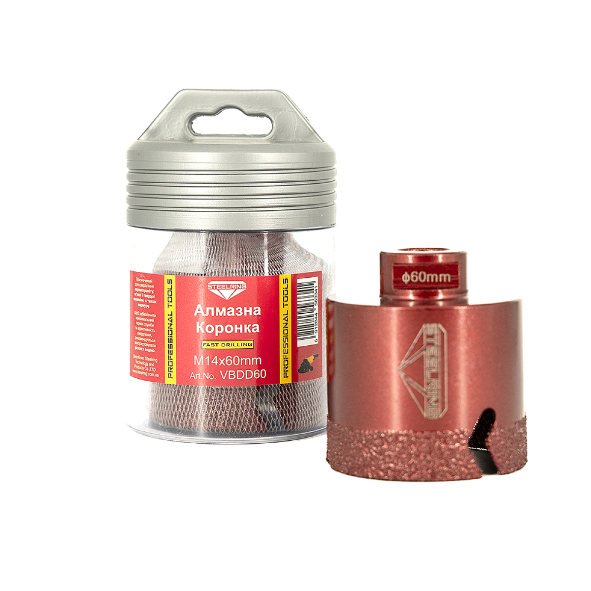 Алмазна коронка STEELRING Ø60 мм M14 для керамограніту, граніту, мармуру, каменю (VBDD60)