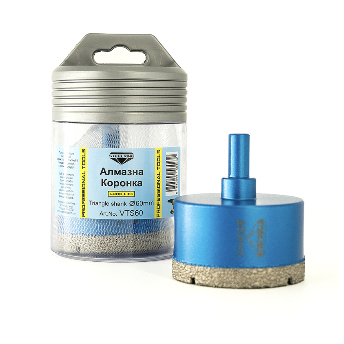 Алмазна коронка STEELRING 60 мм (VTS60) — потужний, точний і довговічний інструмент для професійного свердління облицювальних матеріалів будь-якої твердості.