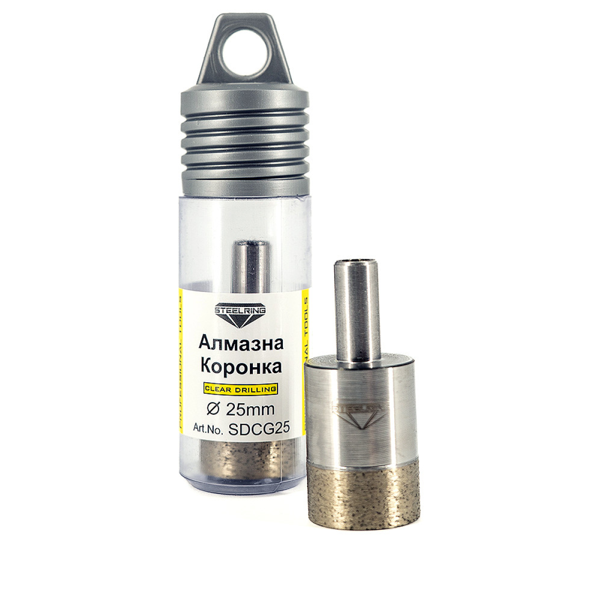 Алмазна коронка STEELRING 25 мм (SDCG25) — професійний інструмент, розроблений для точного свердління скла, кераміки, нефриту, мармуру та інших крихких матеріалів.