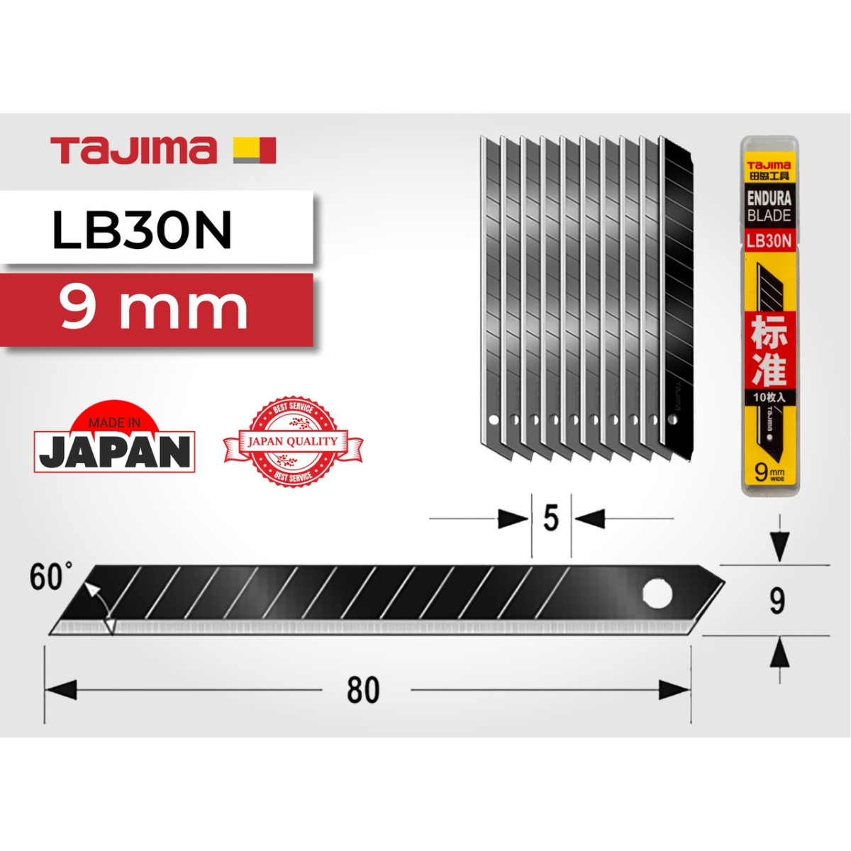 Леза для канцелярського ножа 9 мм TAJIMA (Японія) LB30N ультра міцні сегментні 10 шт (1102-0198)
