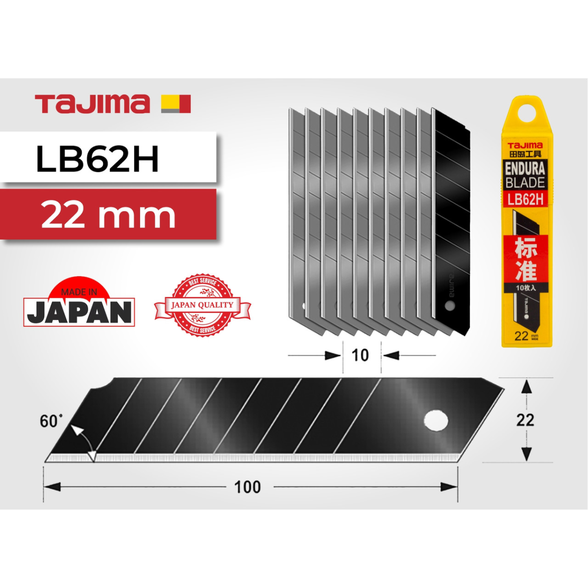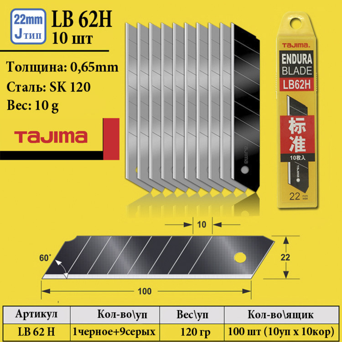 Леза для ножа 22 мм TAJIMA (Японія) LB62H сегментні 10 шт (1102-0024)