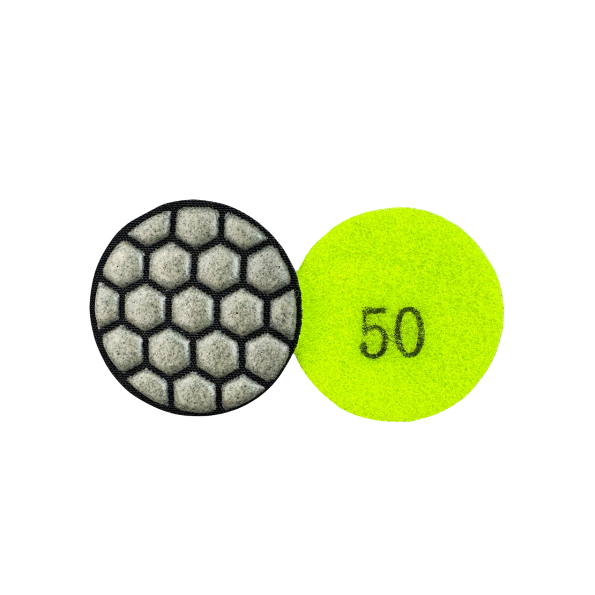 Сотова форма робочої зони покращує охолодження, виведення шламу та стабільність під час роботи — це мінімізує перегрів, вібрації і гарантує довший ресурс. Діаметр 50 мм і кріплення Velcro дозволяють працювати у важкодоступних місцях, де великі круги не можуть забезпечити точність.