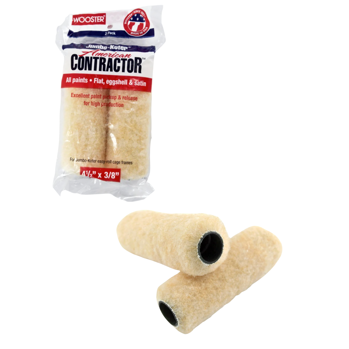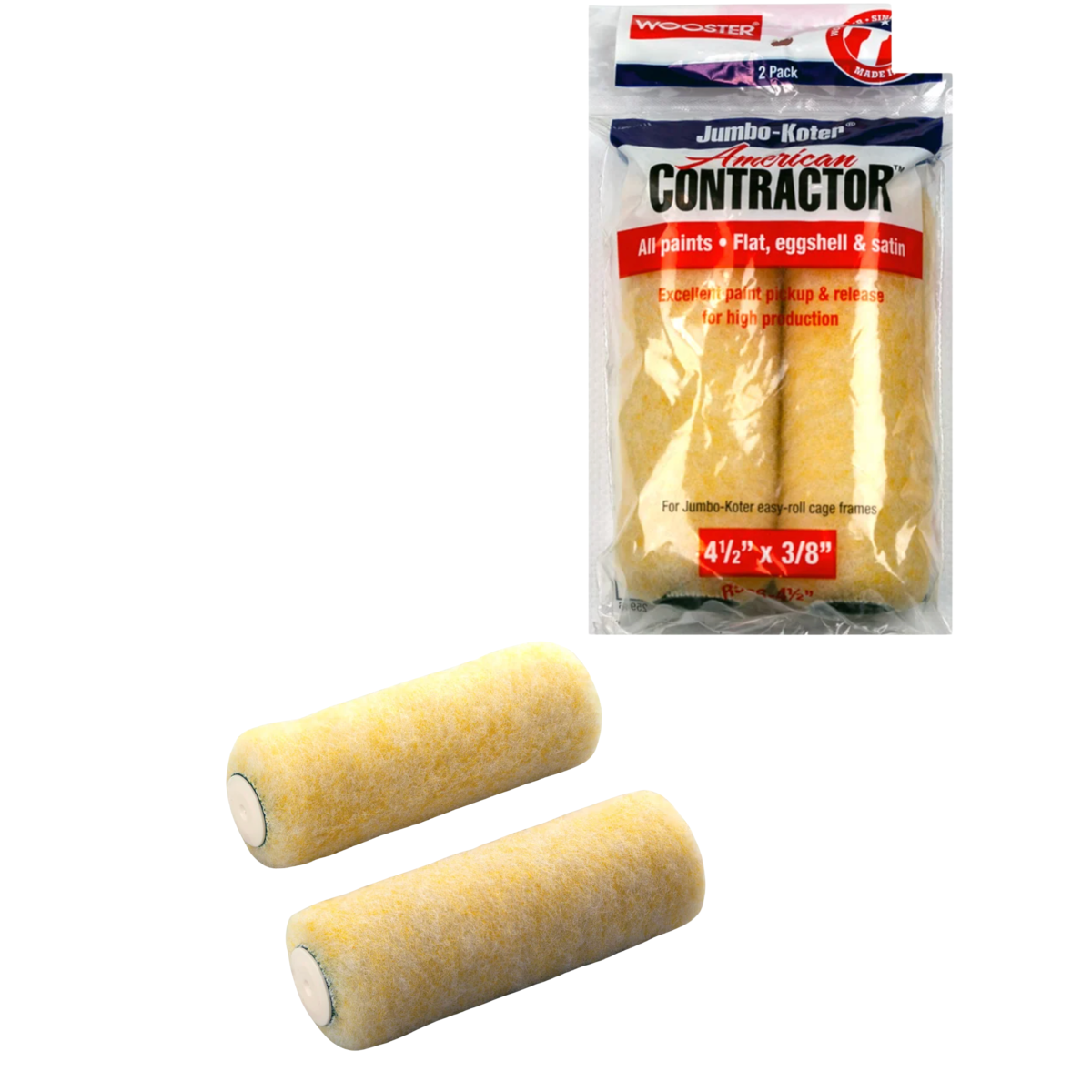 Wooster American Contractor R566-4 (4” / 10 см, 3/8” / 13 мм) — комплект із 2-х в’язаних мініваликів для напівгладких поверхонь. Оптимальний вибір для акуратного фарбування невеликих ділянок, кутів, ніш і зон біля лиштв.