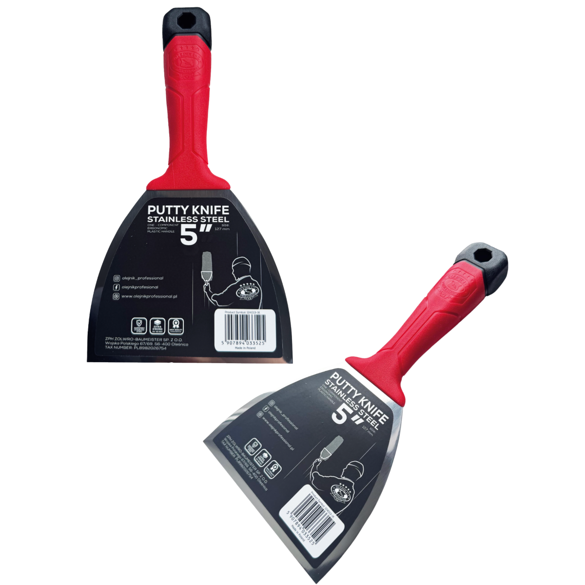 Однокомпонентний шпатель OLEJNIK 130мм із загартованої нержавіючої сталі із ергономічною формою (124013-1K)