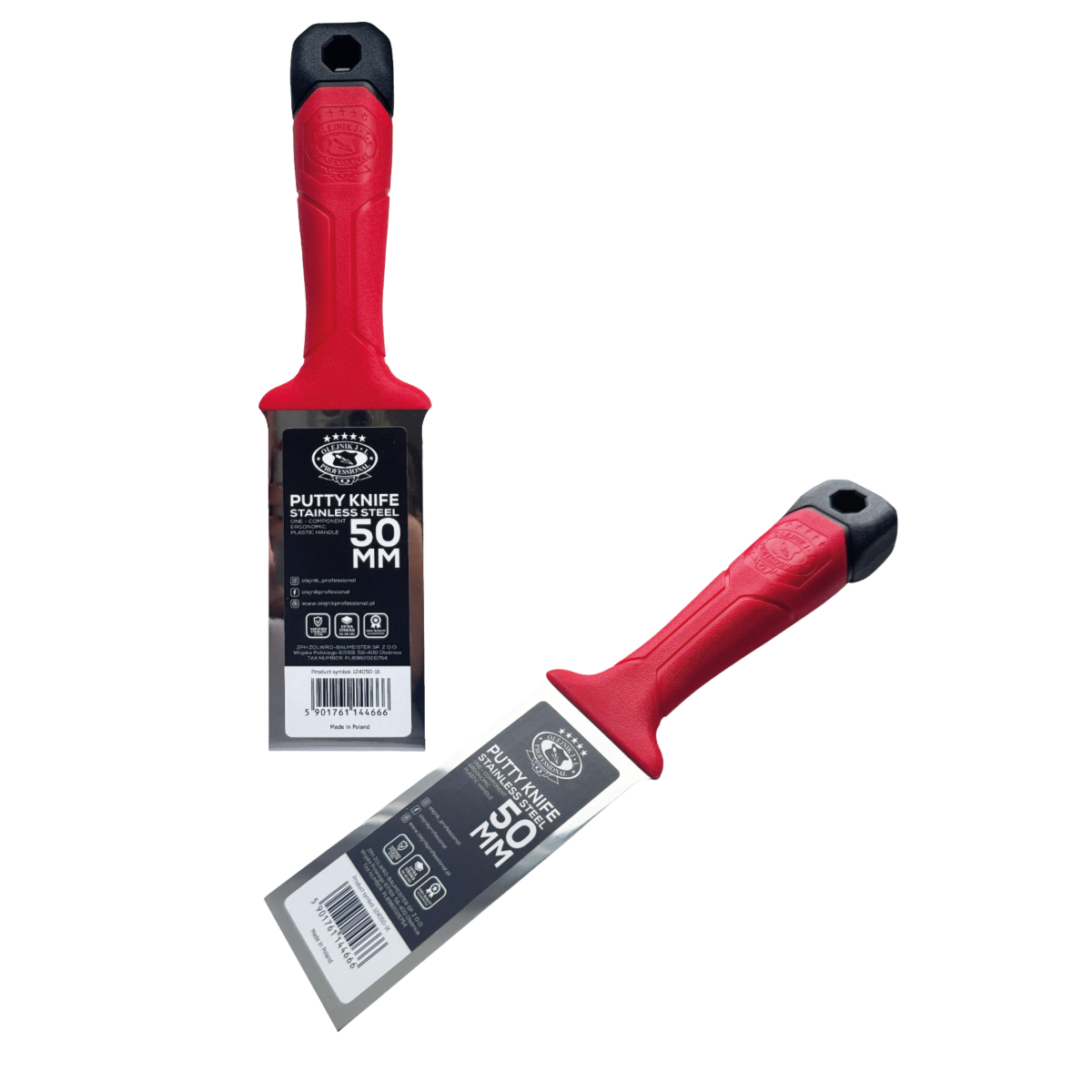 Шпатель OLEJNIK 50 мм виготовлений із високоякісної загартованої нержавіючої сталі, що гарантує міцність, стійкість до корозії та довговічність навіть при інтенсивному використанні. Ергономічна форма ручки забезпечує надійне та зручне тримання, зменшуючи втому рук під час тривалої роботи.