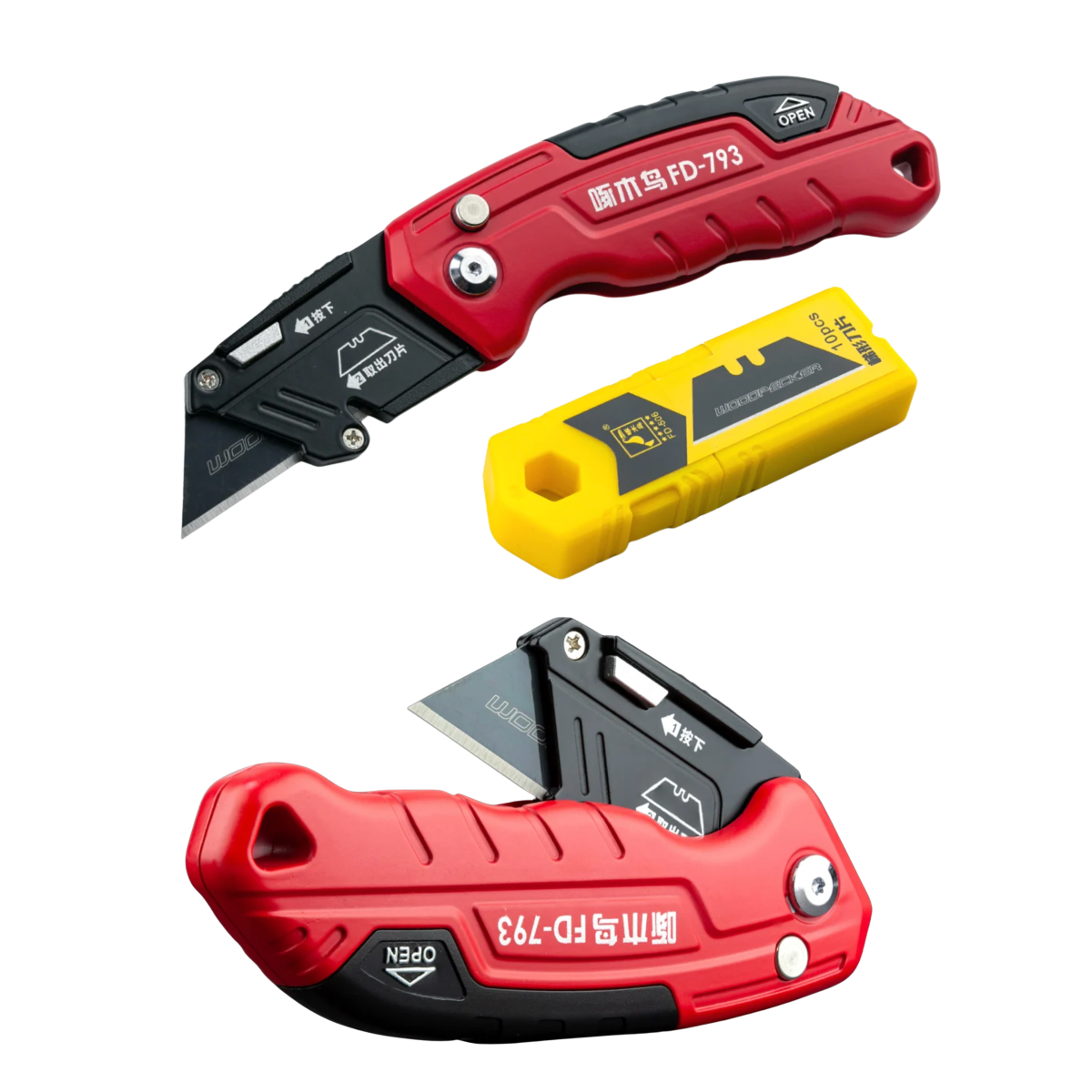 Ніж будівельний складаний трапецієподібний Woodpecker + 10 лез FD-793