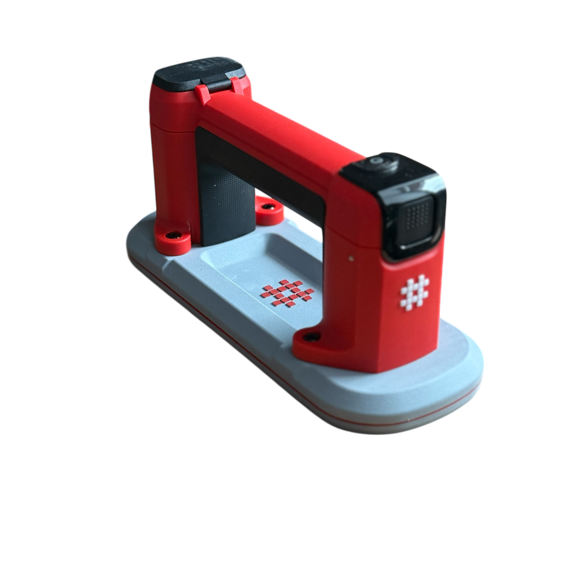 Робоча поверхня виготовлена зі спеціального білого каучуку, який не залишає чорних слідів і безпечний для світлої, глянцевої та полірованої плитки. Повністю автономна робота забезпечується вбудованим акумулятором ємністю 3700 мА·год, а заряджання здійснюється через сучасний роз’єм USB-C. Для зручного транспортування та зберігання присоска постачається у міцному кейсі.