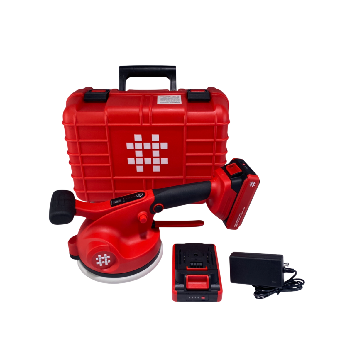 Shijing Digital 9392 — потужна віброприсоска для швидкого та якісного укладання плитки. Поєднує вакуумну фіксацію та вібраційне ущільнення, що ефективно видаляє повітряні бульбашки з-під плитки та забезпечує надійне зчеплення з основою. Цифрове керування і мотор 21 В дозволяють точно контролювати процес, а дві батареї 2.0 A·h гарантують безперервну роботу без простоїв.