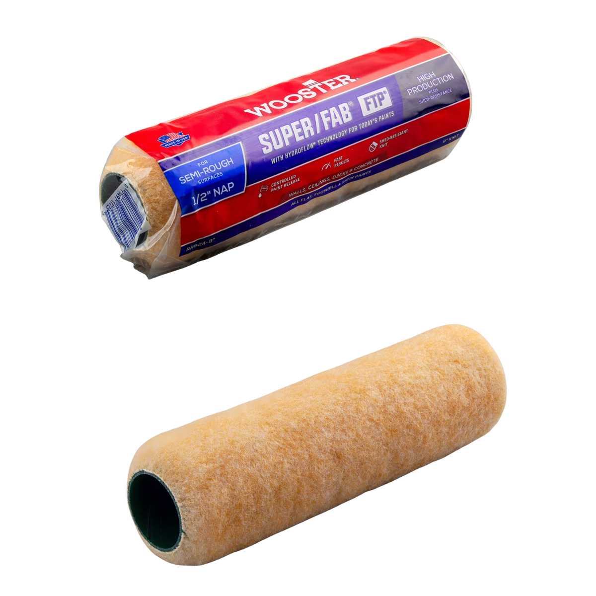 Малярний валик Wooster Super/Fab FTP RR924-9 — професійний в’язаний валик для продуктивного фарбування напівшорстких і шорстких поверхонь. Серія Super/Fab відома стабільним набором фарби та рівномірною віддачею матеріалу, що дозволяє отримувати щільне покриття без пропусків і смуг.