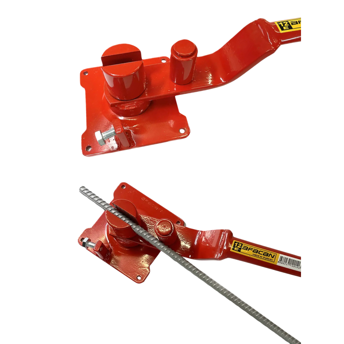 AFACAN 12E — це надійний ручний верстат для гнуття арматури, призначений для формування точних кутів вигину сталевих арматурних стрижнів діаметром від 6 до 12 мм. Інструмент широко використовується на будівельних майданчиках під час монтажу армуючих каркасів, виготовлення бетонних конструкцій, фундаментів, колон та інших металевих елементів.