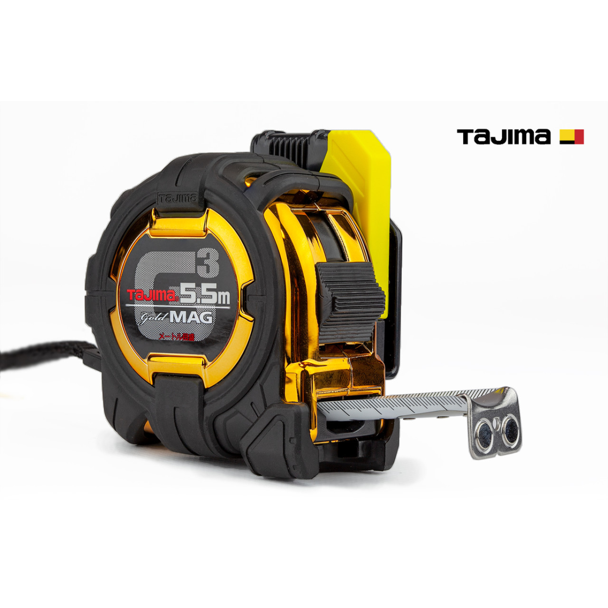 Рулетка будівельна 5,5м х 27мм TAJIMA G3 LOCK ударостійка магнітна з тримачем на ремінь